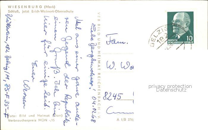 72401590 alte Postkarte Wiesenburg Mark Schloss postalisch gelaufen Erhaltung siehe scans KatCode: 11110012069665