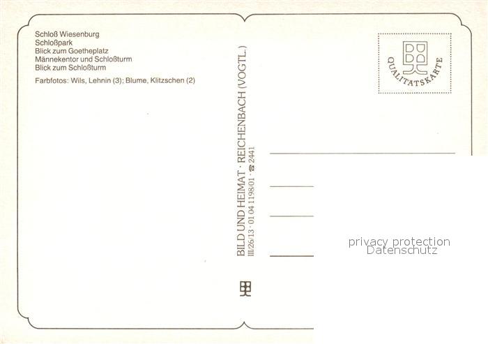 73176671 Wiesenburg Sachsen Schloss Schlosspark Goetheplatz Maennekentor Schlossturm postalisch nicht gelaufen Erhaltung siehe scans [KathaD81] KatCode: 11110014193510