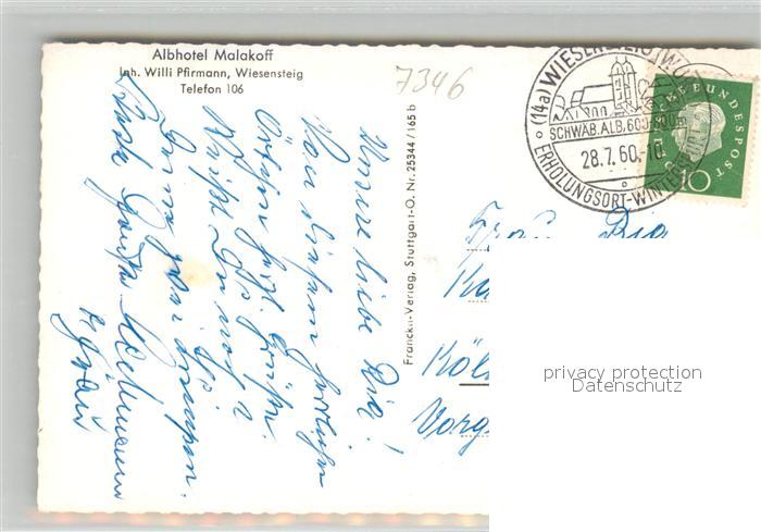 43302738 alte Postkarte Wiesensteig Albhotel Malakoff postalisch gelaufen Erhaltung siehe scans [WerneD78] KatCode: 11110008117058