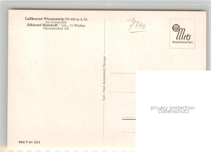 43301454 Wiesensteig Albhotel Malakoff Speisesaal Hotelblick Aufenthaltsraum Reussenstein postalisch nicht gelaufen Erhaltung siehe scans [WerneD78] KatCode: 11110008117058