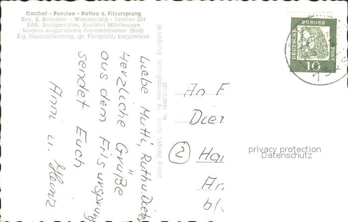 72177456 alte Postkarte Wiesensteig Autobahn Albaufstieg Todsburgbruecke Reussenstein Filsursprung Makrtbrunnen postalisch gelaufen Erhaltung siehe scans KatCode: 11110008117058