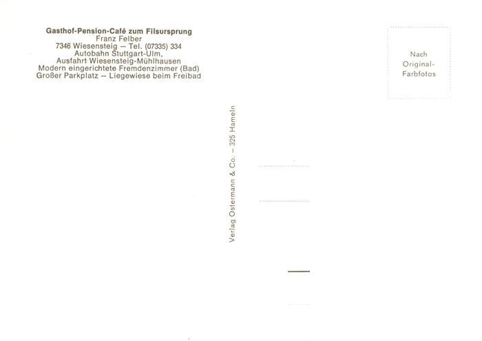 73875911 Wiesensteig Gasthof Pension Cafe zum Filsursprung postalisch nicht gelaufen Erhaltung siehe scans [FriedD77] KatCode: 11110008117058