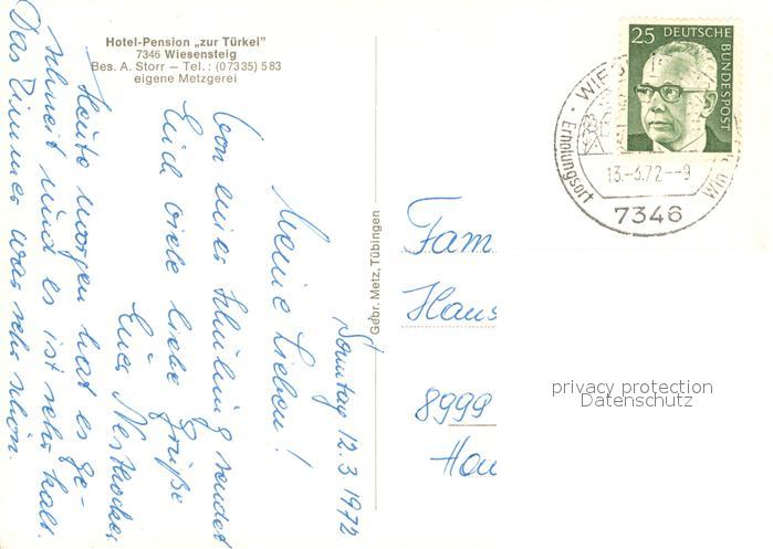 73745377 alte Postkarte Wiesensteig Hotel Pension zur Tuerkei Gaststube Panorama postalisch gelaufen Erhaltung siehe scans [WerneD78] KatCode: 11110008117058