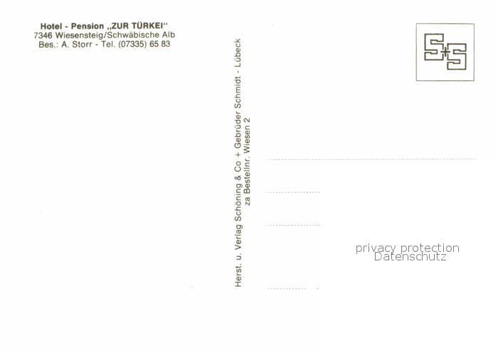 72765232 Wiesensteig Hotel Pension Zur Tuerkei Landschaftspanorama Schwaebische Alb postalisch nicht gelaufen Erhaltung siehe scans [FriedD77] KatCode: 11110008117058