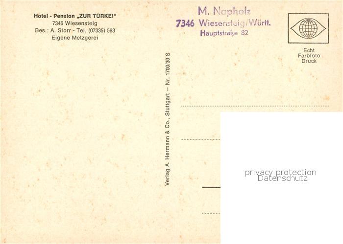 73070259 Wiesensteig Hotel Zur Tuerkei postalisch nicht gelaufen Erhaltung siehe scans [NatalD47] KatCode: 11110008117058