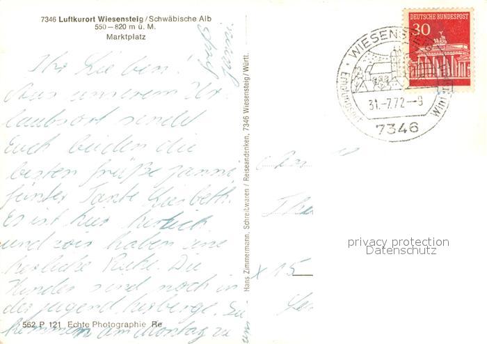73105048 alte Postkarte Wiesensteig Marktplatz postalisch gelaufen Erhaltung siehe scans [KathaD81] KatCode: 11110008117058