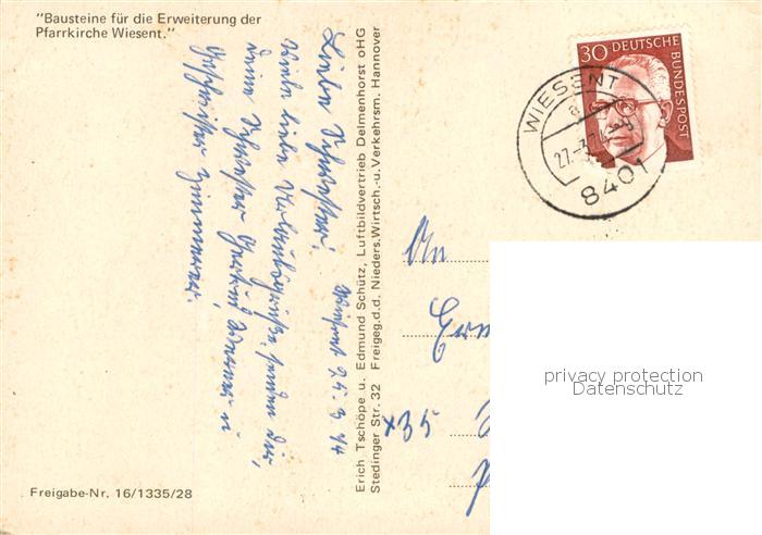 73766765 alte Postkarte Wiesent Kirche Bausteine fuer die Erweiterung der Pfarrkirche postalisch gelaufen Fliegeraufnahme Erhaltung siehe scans [FriedD77] KatCode: 11110009375209