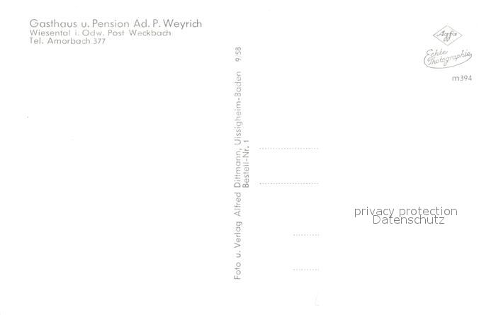 73595670 Wiesental Hessen Landschaftspanorama Gasthaus Pension Weyrich postalisch nicht gelaufen Erhaltung siehe scans [FriedD77] KatCode: 11110006440005