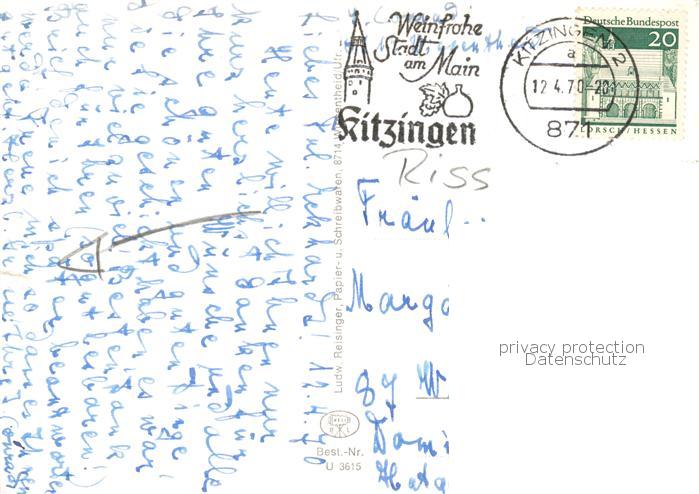 73863163 alte Postkarte Wiesentheid Neumannkirche Mariensaeule Schoenbergisches Schloss postalisch gelaufen Erhaltung siehe scans [WerneD78] KatCode: 11110009675178