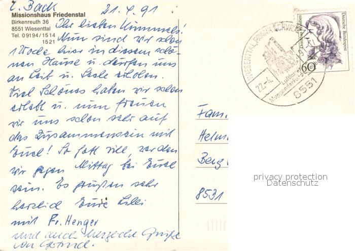 73653041 alte Postkarte Wiesenttal Missionshaus Friedenstal postalisch gelaufen Erhaltung siehe scans [WerneD78] KatCode: 11110009474176
