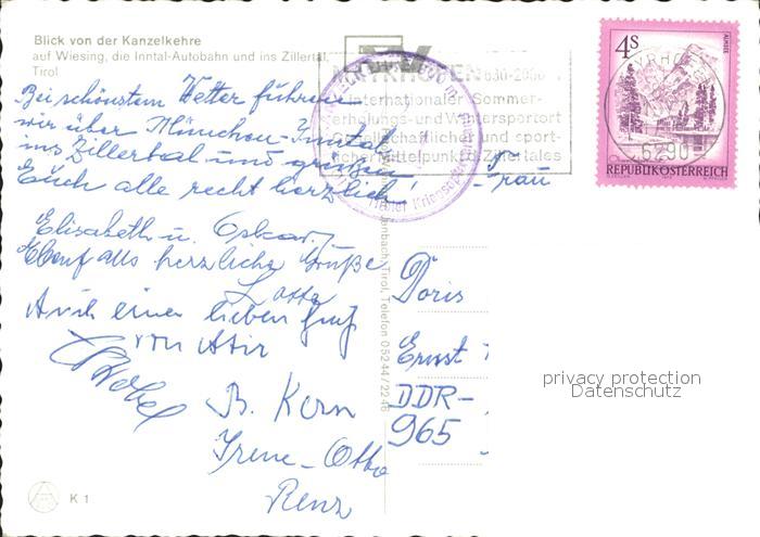 71996349 alte Postkarte Wiesing Tirol Blick von Kanzelkehre Inntalautobahn postalisch gelaufen Erhaltung siehe scans KatCode: 11390335070939