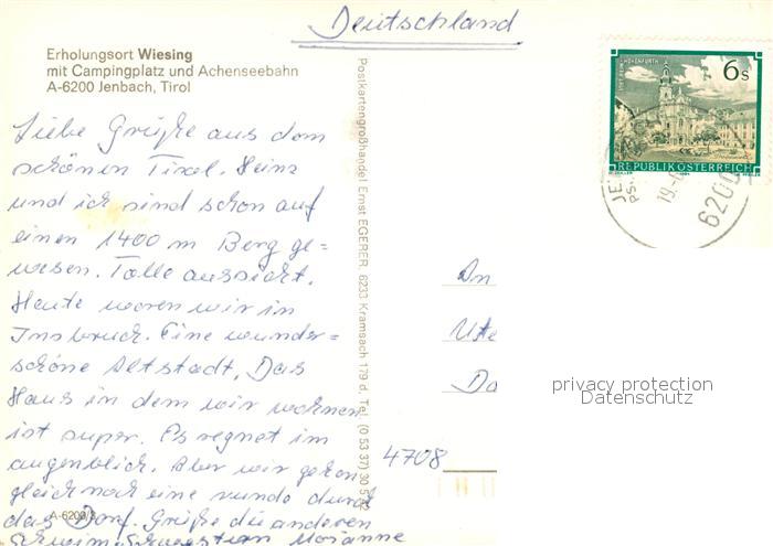 73304503 alte Postkarte Wiesing Tirol Erholungsort mit Campingplatz und Achenseebahn postalisch gelaufen Erhaltung siehe scans [FriedD77] KatCode: 11390335070939