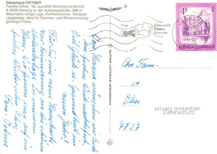 73327170 alte Postkarte Wiesing Tirol Gaestehaus Ortner Gaststube postalisch gelaufen Erhaltung siehe scans [WerneD78] KatCode: 11390335070939