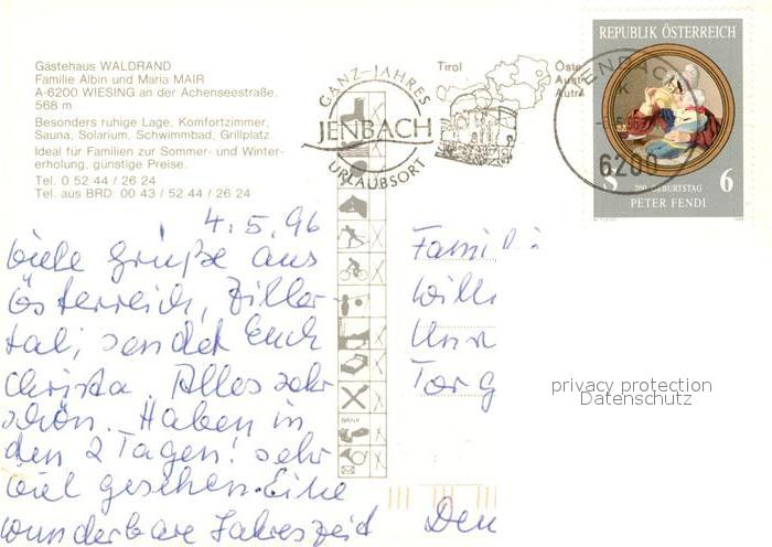 73285054 alte Postkarte Wiesing Tirol Gaestehaus Waldrand postalisch gelaufen Erhaltung siehe scans [NatalD47] KatCode: 11390335070939