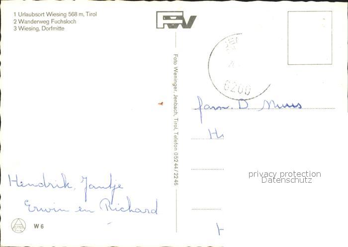 72092305 alte Postkarte Wiesing Tirol Ortsansicht Wanderweg Fuchloch Dorfpartie Kirche postalisch gelaufen Erhaltung siehe scans KatCode: 11390335070939