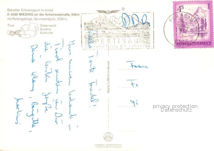 73101905 alte Postkarte Wiesing Tirol Rofangebirge Sonnwendjoch Fliegeraufnahme postalisch gelaufen Erhaltung siehe scans [PaolaD17] KatCode: 11390335070939