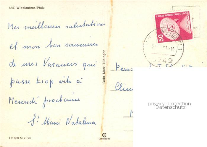 73671425 alte Postkarte Wieslautern Pfalz Panorama Pfaelzer Felsenland Wasserrad Partie an der Lauter postalisch gelaufen Erhaltung siehe scans [FriedD77] KatCode: 11110007340502
