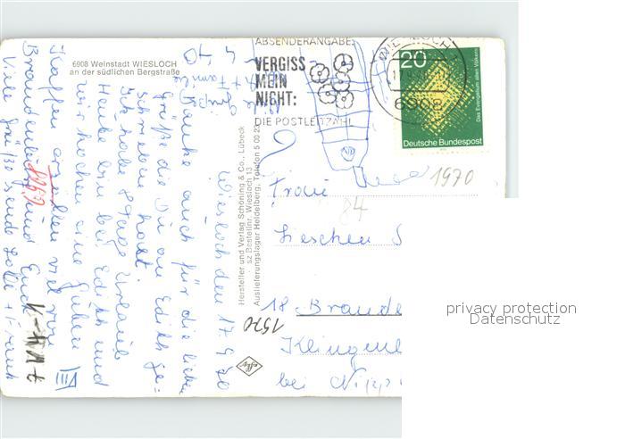 72080995 alte Postkarte Wiesloch Gerbersruhe Anlagen Fontaene postalisch gelaufen Erhaltung siehe scans KatCode: 11110008226098
