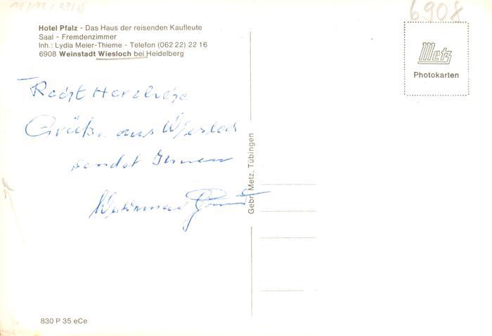 73890971 Wiesloch Hotel Pfalz postalisch nicht gelaufen Erhaltung siehe scans [FriedD77] KatCode: 11110008226098