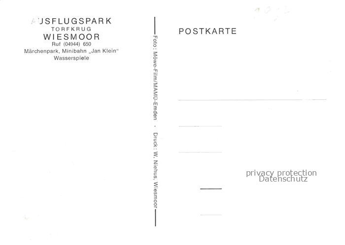 74150717 Wiesmoor Aurich Niedersachsen Ausflugspark Torfkrug Maerchenpark Minibahn Jan Klein Wasserspiele postalisch nicht gelaufen Erhaltung siehe scans [WerneD78] KatCode: 11110003452025