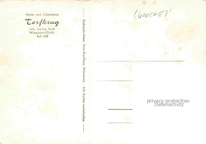 74153516 Wiesmoor Aurich Niedersachsen Hotel Gaestehaus Torfkrug Terrasse postalisch nicht gelaufen Erhaltung siehe scans [FriedD77] KatCode: 11110003452025