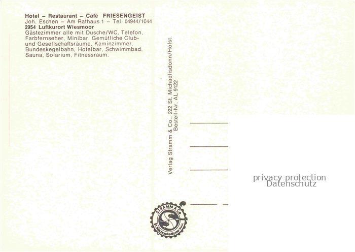 74153512 Wiesmoor Aurich Niedersachsen Hotel Restaurant Friesengeist postalisch nicht gelaufen Erhaltung siehe scans [FriedD77] KatCode: 11110003452025