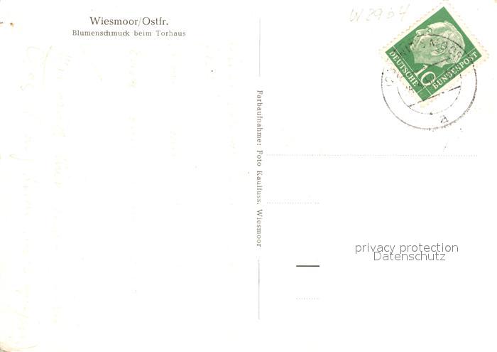 73120043 alte Postkarte Wiesmoor Blumenschmuck Torhaus postalisch gelaufen Erhaltung siehe scans [KathaD81] KatCode: 11110003452025