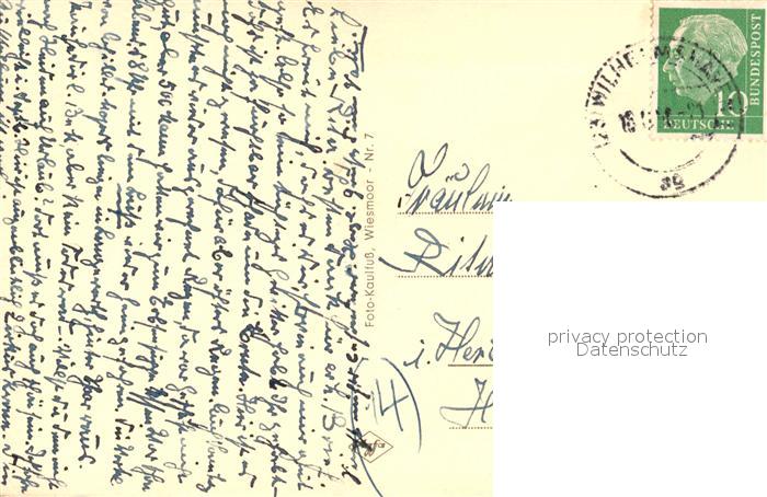 43250795 alte Postkarte Wiesmoor Gaestehaus Torfkrug Festsaal postalisch gelaufen Erhaltung siehe scans [FriedD77] KatCode: 11110003452025