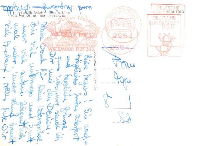 73896763 alte Postkarte Wiesmoor Gaststaette Blauer Fasan Gastraeume postalisch gelaufen Erhaltung siehe scans [WerneD78] KatCode: 11110003452025
