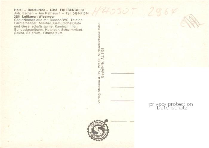 73663676 Wiesmoor Hotel Restaurant Caf? Friesengeist postalisch nicht gelaufen Erhaltung siehe scans [LiesaD40] KatCode: 11110003452025