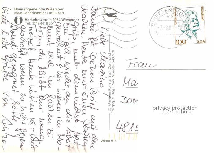 72666283 alte Postkarte Wiesmoor Luftkurort Fliegeraufnahme postalisch gelaufen Erhaltung siehe scans [FriedD77] KatCode: 11110003452025