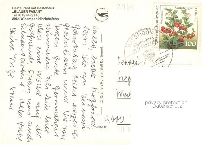 73711615 alte Postkarte Wiesmoor Restaurant Blauer Fasan Aussenansicht postalisch gelaufen Erhaltung siehe scans [LiesaD40] KatCode: 11110003452025