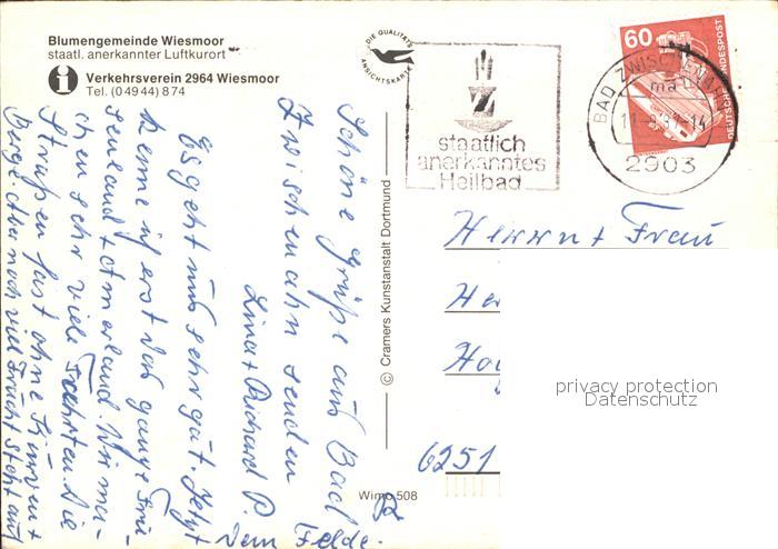 71946468 alte Postkarte Wiesmoor Windmuehle Fliegeraufnahme Blumenwagen Pavillon Hallenbad postalisch gelaufen Erhaltung siehe scans KatCode: 11110003452025