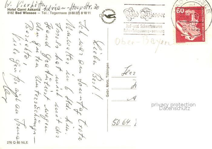 73079274 alte Postkarte Wiessee Bad Hotel Garni Askania postalisch gelaufen Erhaltung siehe scans [KathaD81] KatCode: 11110009182111