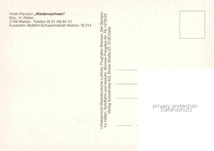 32839184 Wietze Celle Fliegeraufnahme Gasthaus Pension Niedersachsen postalisch nicht gelaufen Erhaltung siehe scans [KathaD81] KatCode: 11110003351023