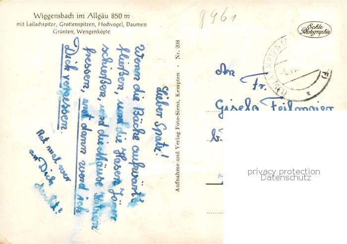 73865475 alte Postkarte Wiggensbach Ortsansicht mit Kirche Panorama Allgaeuer Alpen postalisch gelaufen Erhaltung siehe scans [FriedD77] KatCode: 11110009780146