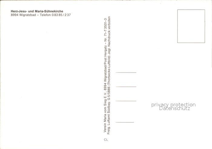 72111727 Wigratzbad Fliegeraufnahme Herz-Jesu und Maria Suehnekirche postalisch nicht gelaufen Erhaltung siehe scans KatCode: 11110009776122