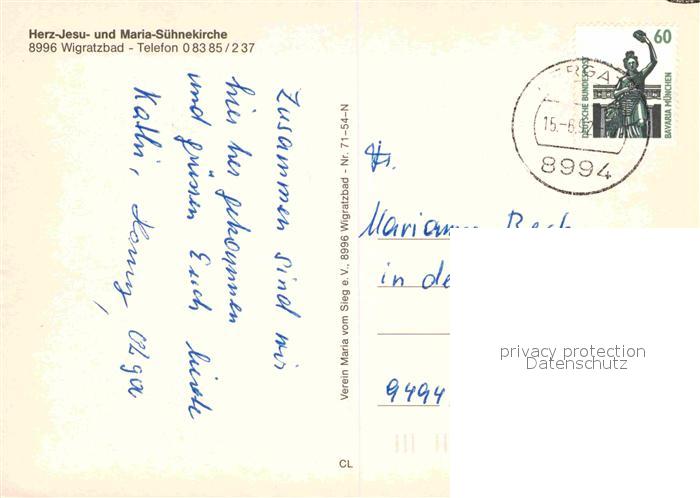 72904490 alte Postkarte Wigratzbad Herz-Jesu und Maria-Suehnekirche postalisch gelaufen Erhaltung siehe scans [LiesaD40] KatCode: 11110009776122