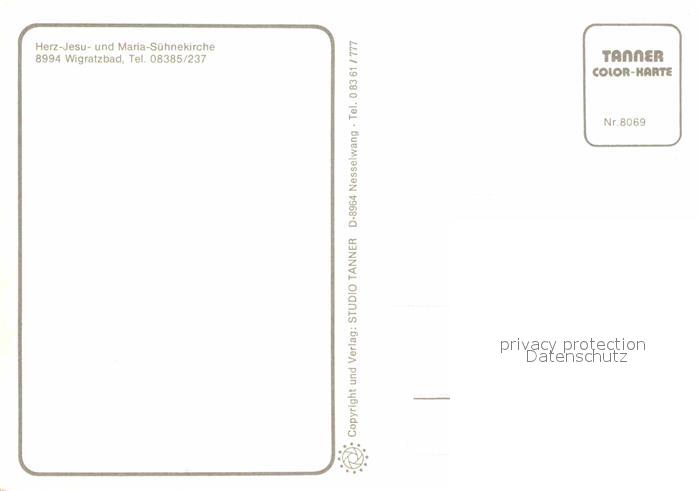 72859194 Wigratzbad Herz-Jesu und Maria-Suehnekirche postalisch nicht gelaufen Erhaltung siehe scans [AndreD76] KatCode: 11110009776122