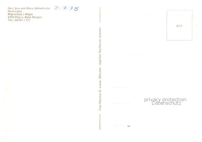 73803476 Wigratzbad Herz Jesu und Maria Suehnekirche Marienaltar postalisch nicht gelaufen Erhaltung siehe scans [WerneD78] KatCode: 11110009776122
