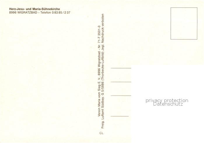 73833629 Wigratzbad Herz Jesu Und Maria Suehnekirche postalisch nicht gelaufen Fliegeraufnahme Erhaltung siehe scans [WerneD78] KatCode: 11110009776122