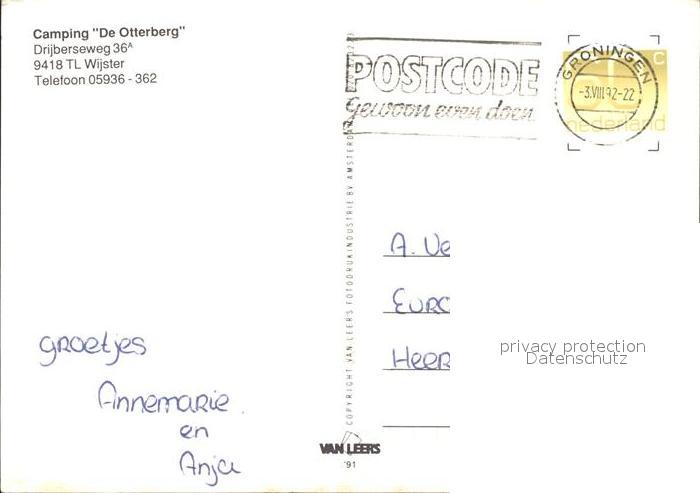 old postcard Wijster Camping De Otterberg Caravaning Planwagen Zelte Swimmingpool postalisch gelaufen Erhaltung siehe scans