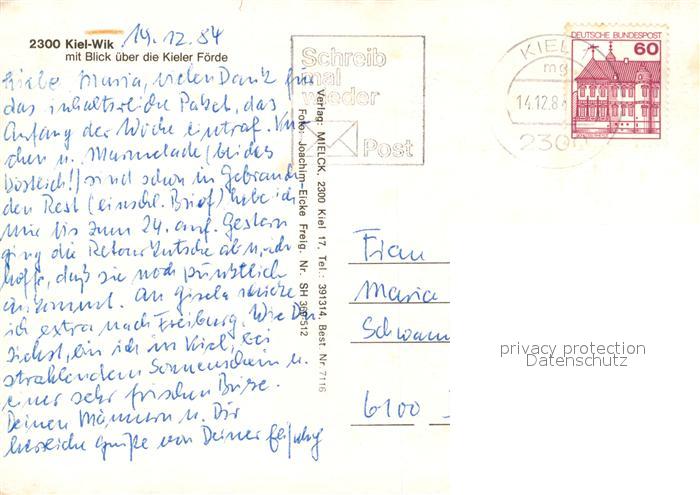73124153 alte Postkarte Wik Fliegeraufnahme mit Hafen und Kieler Foerde postalisch gelaufen Erhaltung siehe scans [LiesaD40] KatCode: 11110001002000