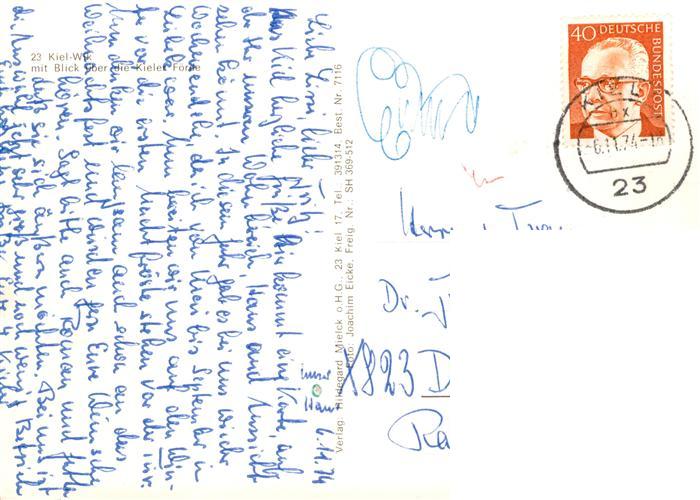 73904808 alte Postkarte Wik mit Blick ueber die Kieler Foerde postalisch gelaufen Fliegeraufnahme Erhaltung siehe scans [FriedD77] KatCode: 11110001002000