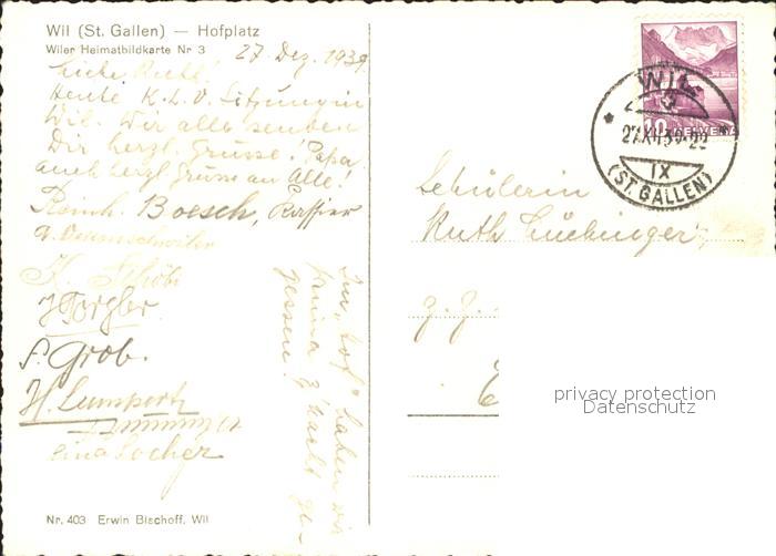 11630990 alte Postkarte Wil SG Hofplatz Brunnen postalisch gelaufen Erhaltung siehe scans KatCode: 11470190595932