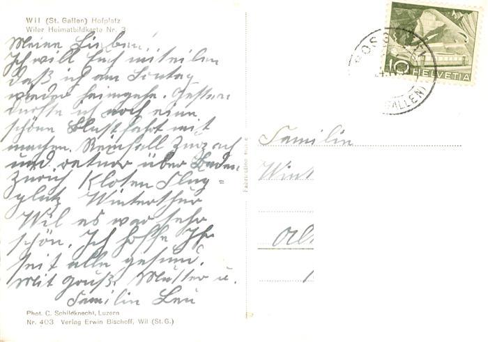 13891398 alte Postkarte Wil SG Hofplatz Wiler Heimatbildkarte Nr. 3 postalisch gelaufen Erhaltung siehe scans [FriedD77] KatCode: 11470190595932