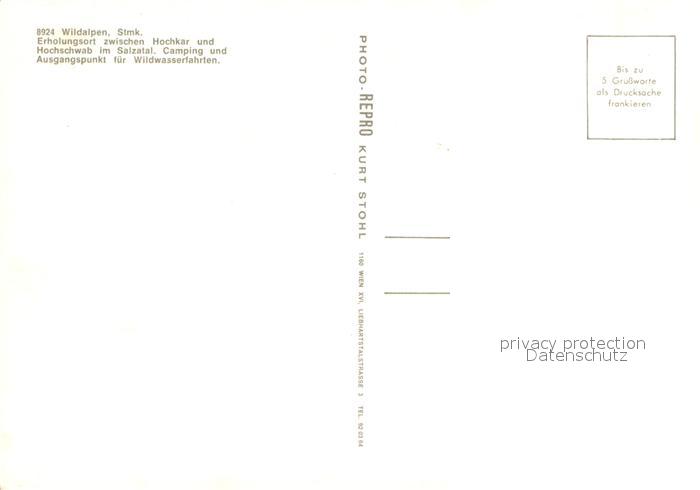 73166651 Wildalpen Kanu Camping zwischen Hochkar und Hochschwab postalisch nicht gelaufen Erhaltung siehe scans [LiesaD40] KatCode: 11390222061251