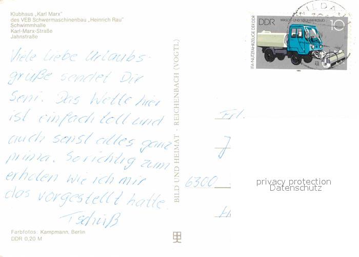 72631642 alte Postkarte Wildau Koenigs Wusterhausen Klubhaus Karl-Marx Schwimmhalle Jahnstrasse postalisch gelaufen Erhaltung siehe scans [LiesaD40] KatCode: 11110012061540