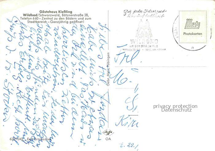 74105102 alte Postkarte WILDBAD Bad Schwarzwald BW Gaestehaus Kiessling Gastraum Landschaftspanorama postalisch gelaufen Erhaltung siehe scans [FriedD77] KatCode: 11110008235079