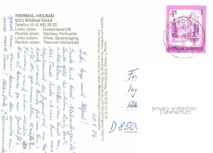 72701025 alte Postkarte Wildbad Einoed Thermal Heilbad Park Allee postalisch gelaufen Erhaltung siehe scans [FriedD77] KatCode: 11390226061412